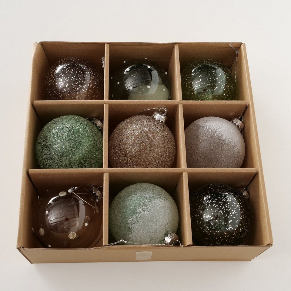 Die Kugeln kombinieren Glanz, Glitzer und Matt und verwandeln die einzelnen Kugeln in individuelle Ergänzungen am Weihnachtsbaum.