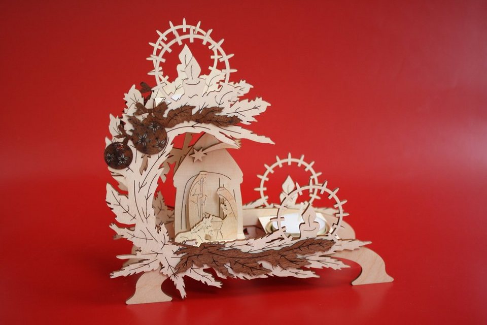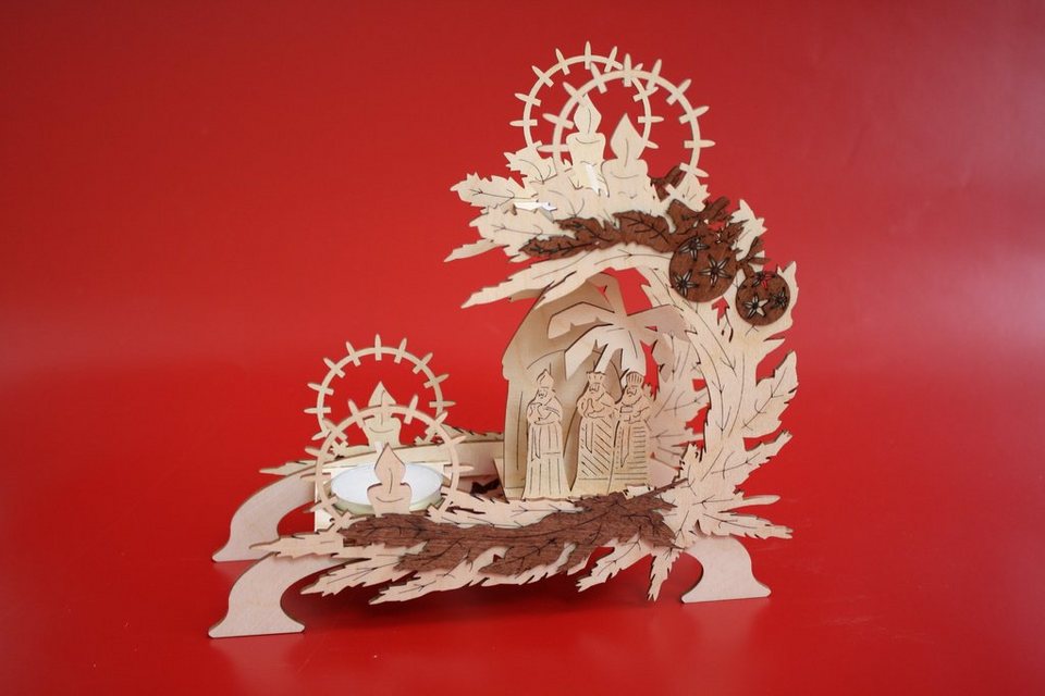 Details: DeColibri LED Schwibbogen »Teelichthalter Jesus Krippe, Heilige drei Könige«, Ost – Erzgebirge Weihnachten Handwerkskunst