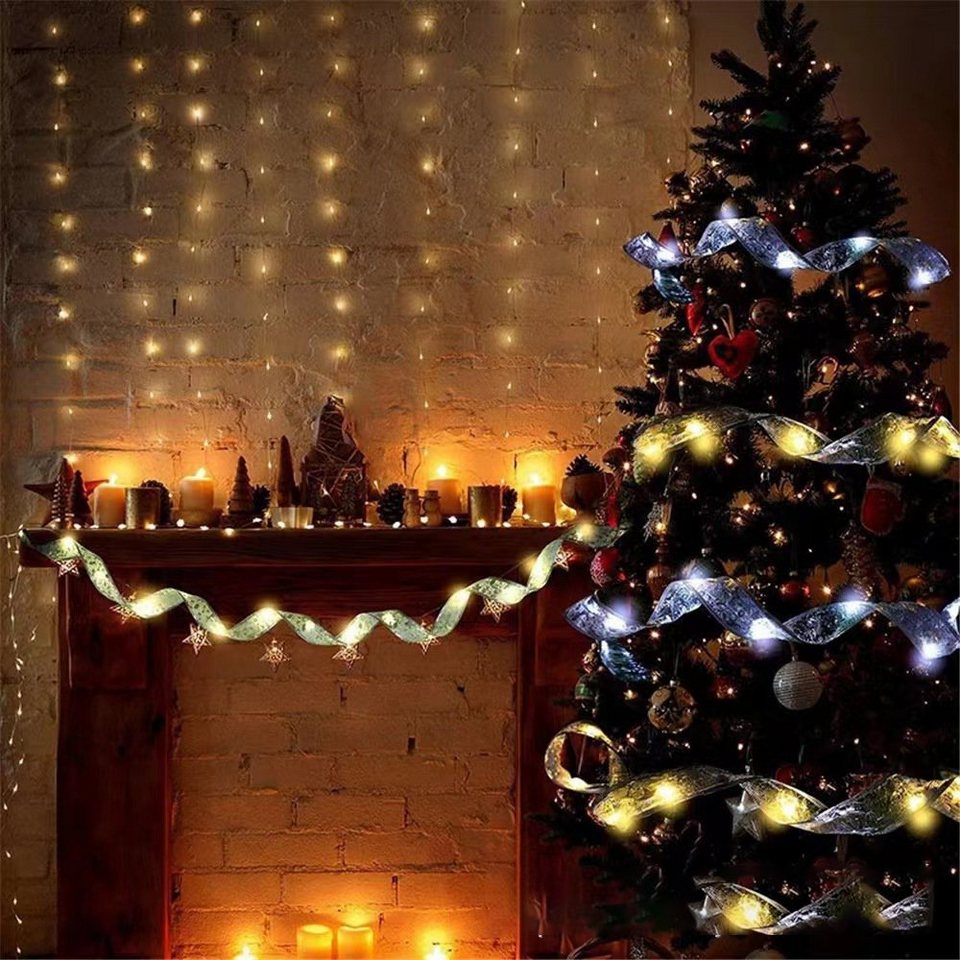 FeelGlad LED-Lichterkette »Weihnachtsband Lichter, 5m 50 Lichter bunte Licht Silber Band für Garten Terrasse Dekoration«, 50-flammig