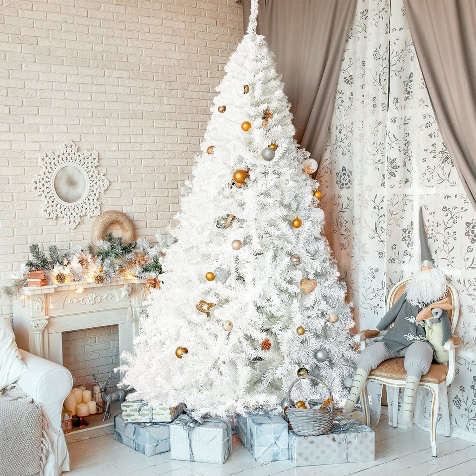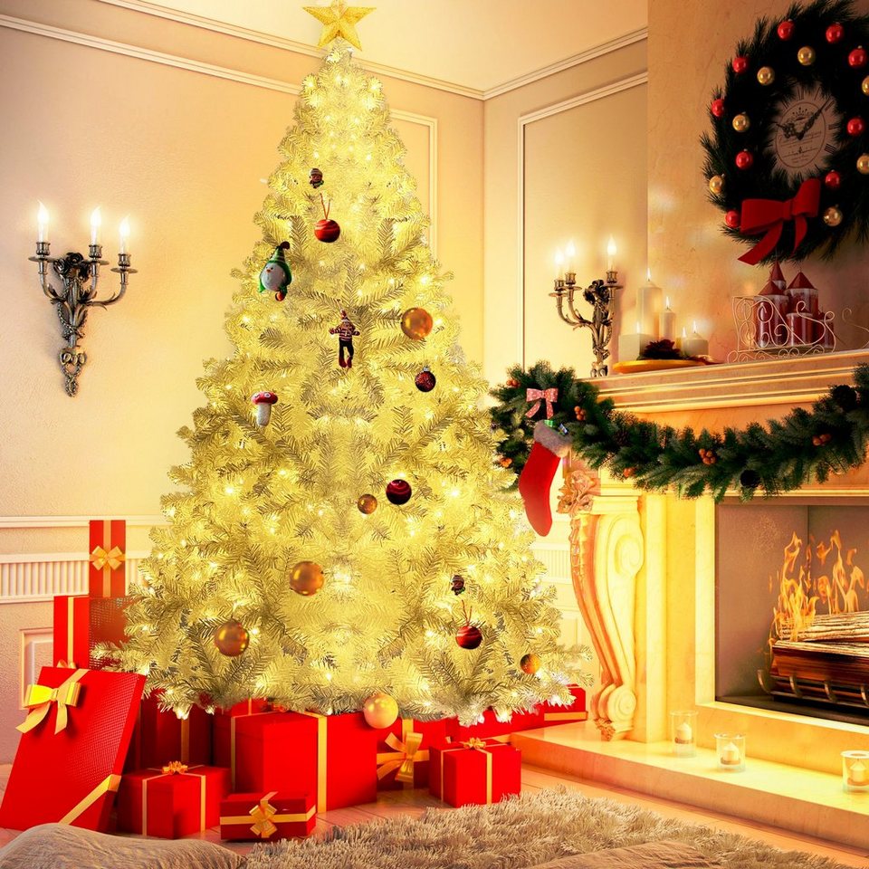Fortuna Lai Künstlicher Weihnachtsbaum, Weihnachtsbaum, künstlicher Weihnachtsbaum mit 350 LED-Lichtern, 1250 PVC-Spitze, Tannenbaum, Weiß