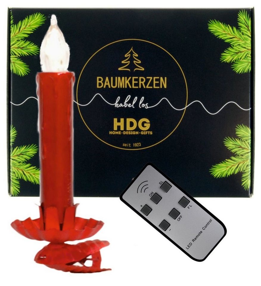 hdg LED-Christbaumkerzen »rot mit Fernbedienung Ø 15 mm«, inkl. 8 roten Baumkerzenhaltern in Zapfenform made in Germany